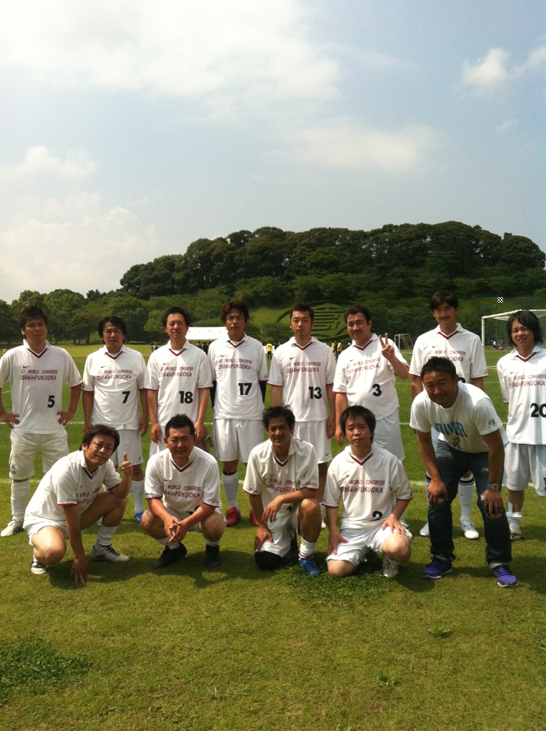 昨日の野球に引き続き、本日はサッカーの九州大会である。昨日の予選リーグを2勝1敗で勝ち抜いたということで、清水常務と2人で応援に行った。朝06:00に出発し、宮崎県都城市へ。2009年には何度となく通った道なので、思った以上に近く感じる。先日仮入会者オリエンの際に大村歴代が言われていた感覚を実感する。いわゆる「慣れ」である。さて、試合場の高城総合運動公園には、09:00頃到着。試合は09:30と聞いていたので、ゆっくり間に合った。西キャプテンを見つけ、メンバーが集まっているところに行くと、どうも様子がおかしい。明らかに人数が少ない!事情を聞くと、昨日出場したメンバーで帰った人や日頃の運動不足によりけが人が続出したらしい。ということで、私と清水常務もユニフォームを渡され、試合に出ることとなった。サッカーの試合と言うと、高校の体育の授業以来である。まあ、岩元委員長からは、「前にいてじっとしてればいい!」とアブラムシのような扱いを受けながら、試合が始まった。対戦相手は飯塚JCである。何度かボールには触ったぐらいで何も貢献できずに、本当にアブラムシ状態だった(泣)ポンズのメンバーの皆さん、ごめんなさい。試合は0対2で敗れた。しかし、メンバーの体力には驚いた。是非、その体力で今後の活動にも頑張っていただきたい。